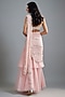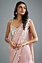 Featuring a pastel pink saree in raw silk base with mirror embroidery. It is paired with an organza embroidered blouse. Accentuate it with statement earrings and heels for weddings or sangeet ceremonies.