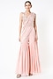 Featuring a peach sharara saree in georgette and raw silk base with mirror embroidery. It is paired with a matching blouse. Perfect wear for festive ocassions or wedding ceremonies.