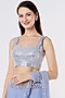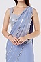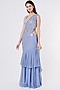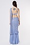 Featuring a periwinkle blue tiered saree in georgette and raw silk base with ruffles and mirror embroidery. It is paired with a matching blouse having mirror work.
