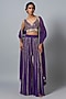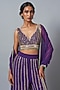 Featuring a purple blouse in raw silk and georgette base with sequins embroidery. It is paired with sharara pants and a dupatta. Accentuate it with statement jewellery and heels for a festive look.