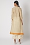 Featuring a beige tunic in chanderi base with gold hand block print and tissue frayed edge detailing. This contains only one piece.