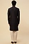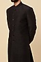Featuring a black-green ombre sherwani in raw silk base with zardosi embroidery. It is paired with contrasting pants.