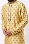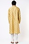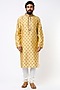Featuring a yellow kurta in cotton base with block print and machine embroidery. It is paired with churidar pants. Perfect attire for festive occasion or haldi ceremony, exuding traditional charm and elegance.