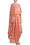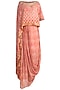 Featuring a orange draped top in banarasi base with embroidery. It is paired with matching draped skirt.