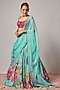 Featuring an aqua blue lehenga in dola silk base with print and floral motif hand embroidery. It is paired with a deep rose pink silk blouse having 3D floral and sequins hand embroidery, including an organza embroidered dupatta. Accentuate it with kundan polki or meenakari jewellery and heels for daytime weddings or sangeet ceremony.