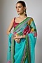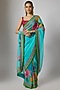 Aqua Blue Organza Floral Motifs Embroidered Draped saree Set