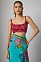 Featuring an aqua blue draped saree in organza base with floral motifs embroidery. It is paired with a deep rose pink dola silk blouse having sequins and floral hand embroidery. Accentuate it with delicate pearl or pastel statement earrings and elegant heels for a stylish ensemble, ideal for festive brunches, daytime celebrations or intimate wedding functions.