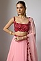 Featuring a blush pink lehenga in dola silk base with floral print and embroidery. It is paired with a blouse having cutdana and tikki hand embroidery, including an organza dupatta having scalloped embroidery. Accentuate it with traditional kundan or meenakari jewellery, a vibrant potli bag, and embellished juttis for a stylish ensemble, ideal for grand festive gatherings or wedding celebrations.