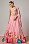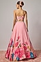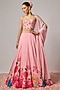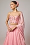 Featuring a blush pink lehenga in dola silk base with print and floral motif hand embroidery. It is paired with a blouse having thread, sequins and beads embroidery, including a soft organza scalloped embroidered dupatta. Accentuate it with kundan polki or zircon jewellery and heels for daytime weddings or sangeet ceremony.