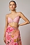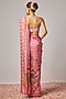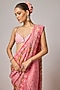 Featuring a blush pink pre-draped saree in organza base with sequins and floral embroidery. It is paired with a silk blouse. Accentuate it with kundan polki or pearl jewellery and heels for festive occasions or weddings.