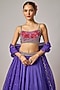 Featuring a deep purple lehenga in dola silk base with floral motif hand embroidery. It is paired with an embroidered blouse and an organza scalloped embroidered dupatta. Accentuate it with kundan polki or zircon jewellery and heels for daytime weddings or sangeet ceremony.