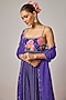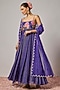 Featuring a deep purple anarkali in lurex georgette base with sequins, beads and cutdana hand embroidery. It is paired with lycra pants and an organza scalloped dupatta. Accentuate it with statement earrings and heels for festive gatherings or daytime weddings.