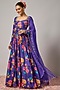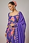 Featuring a deep purple anarkali in pure crepe base with floral print and hand embroidery. It is paired with lycra churidar pants and an organza embroidered dupatta. Accentuate it with zircon earrings and heels for festive gatherings or sangeet ceremony.