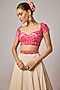 Featuring a deep rose pink blouse in silk base with a sweetheart neckline and cape sleeves, including 3D floral motif and sequins embroidery. Accentuate it with a lehenga or saree and statement jewellery for a wedding or sangeet ceremony.