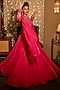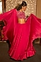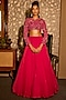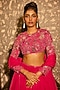 Featuring a fuchsia pink lehenga in soft organza and pure crepe base. It is paired with a high-neck blouse having sequins, zari, cutdana and bead hand embroidery, including an organza embroidered dupatta. Accentuate it with statement earrings and block heels for sangeet ceremonies or cocktail parties.