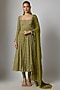 Mehendi Green Chinon Bandhani Printed & Hand Embroidered Anarkali Set