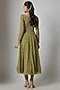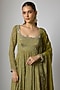 Featuring a mehendi green anarkali in chinon base with bandhani print and hand embroidery. It is paired with lycra churidar pants and a dupatta having zari detailing. Accentuate it with statement chandbali earrings, a delicate bracelet and embroidered heels for a stylish ensemble, ideal for wedding festivities, festive celebrations or mehendi functions.