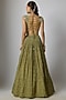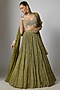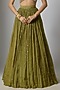 Featuring a mehendi green lehenga in chinon base with bandhani print. It is paired with a blouse having mirror, cutdana zari and pearl beads embellishment, including a dupatta having zari detailing. Accentuate it with statement kundan jewellery, a delicate potli bag and embellished heels for a stylish ensemble, ideal for wedding festivities, sangeet celebrations or engagement ceremony.