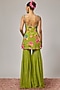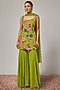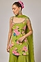 Featuring a mehendi green kurta in crepe base with floral print and hand embroidery. It is paired with lurex georgette sharara pants and an organza embellished dupatta. Accentuate it with statement jewellery, polti and heels for a festive occasion, mehendi, sangeet or engagement ceremony.