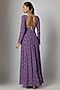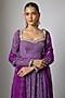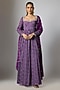 Featuring a purple anarkali in chinon base with bandhani print and hand embroidery. It is paired with lycra pants and a dupatta having zari embroidery. Accentuate it with statement chandbali earrings, a delicate bracelet and embroidered heels for a stylish ensemble, ideal for wedding festivities, festive celebrations or family functions.