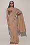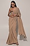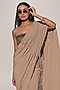 Beige Blended Line Ruched Saree Set