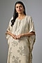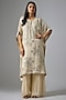 Featuring a beige kaftan kurta in georgette base with mirror and sequins embroidery, including floral print. It is paired with crush chinon palazzo pants and a butter crepe inner. Accentuate it with statement earrings and heels for a festive look.