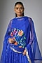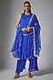 Featuring a blue crushed kurta in silk satin base. It is paired with pants and an organza dupatta. Accentuate it with statement jewellery and heels for a family gathering or pooja ceremony.