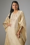 Featuring a gold and silver kaftan in stripe tissue base with mirror hand and machine embroidery. It is paired with a butter crepe inner. Accentuate it with statement earrings and heels for a festive look.
