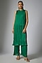 Featuring a green crushed kurta in georgette satin base. It is paired with pants. Accentuate it with statement jewellery and heels for a family gathering or pooja ceremony.