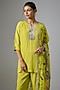 Featuring a lime green kurta in chinon base with gota embroidery. It is paired with pants and a viscose organza hand painted dupatta. Accentuate it with statement earrings and heels for a festive look.