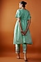 Featuring a mint green kaftan in cotton satin base with tassels and floral print. It is paired with silk pants having thread embroidery. Accentuate it with hoop earrings and heels for a complete look.