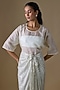 Featuring an off-white top in organza base. It is paired with a double georgette inner and a stretchable fabric sequin skirt. Style this set with statement earrings, sleek heels and a clutch for a chic, perfect for evening or cocktail parties.