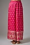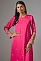 Featuring a pink anarkali in imported satin base with zardosi embroidery and side slit detail. It is paired with brocade pants. Accentuate it with statement earrings and heels for a festive look.