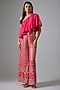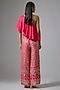 Featuring a pink one-shoulder top in silk base. It is paired with sequins embroidered pants. Accentuate it with statement earrings and heels for evening soirees.