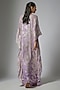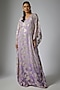 Featuring a purple ombre kaftan in georgette base with mirror work. It is paired with a butter crepe inner. Accentuate it with statement jewellery and heels for a family gathering or pooja ceremony.