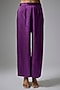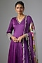 Featuring a purple anarkali in silk satin base with zardosi embroidery. It is paired with pants and a viscose organza hand painted dupatta having cutwork border. Accentuate it with statement earrings and heels for a festive look.