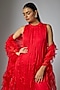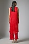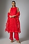 Featuring a red crushed kurta in silk satin base. It is paired with pants and an organza dupatta. Accentuate it with statement jewellery and heels for a family gathering or pooja ceremony.