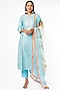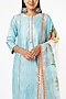 Featuring a sky blue kurta in sequinned silk base with a leheriya border design. It is paired with matching cotton satin pants and a dupatta in viscose organza base having mirror leheriya work.