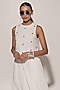 Featuring a white crop top in blended linen base with metal embedded detail. It is paired with a box pleated skirt. Accentuate it with chunky hoop earring and heels for an evening soiree, brunch date, vacation or office wear.