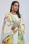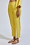 Featuring a yellow kurta in linen satin base with zardosi embroidery and hand painting. It is paired with matching linen satin pants and a viscose organza dupatta having cutwork border and hand painting.