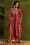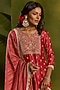 Featuring a coral kurta in banarasi silk chanderi base with dabka embroidery. It is paired with straight pants and a chanderi stripe dupatta. Accentuate it with statement earrings and heels for festive gatherings or wedding ceremonies.