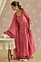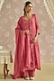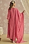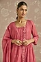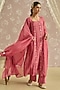Featuring a coral kurta in chanderi base with floral, thread and sequins hand embroidery. It is paired with cotton pants, a slip and a chanderi dupatta. Accentuate it with statement jewellery and heels for a festive look.