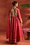 Featuring a coral anarkali in silk base with dori and aari embroidery. It is paired with silk straight pants and a tissue dupatta. Accentuate it with statement earrings and heels for festive gatherings or wedding ceremonies.
