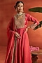 Coral Silk Dori & Aari Embroidered Anarkali Set
