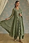 Green Chanderi Floral Embroidered A-Line Kurta Set