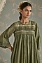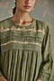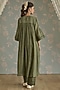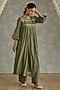 Featuring a green tunic in chanderi base with floral hand embroidery. It is paired with cotton straight-cut pants and a slip. Accentuate it with statement jewellery and heels for a festive look.