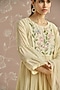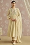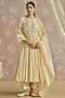 Featuring an ivory kurta in chanderi base with hand embroidery. It is paired with cotton pants and a chanderi dupatta. Accentuate it with statement jewellery and heels for a festive look.