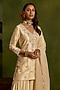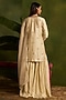 Featuring an ivory short kurta in silk and tissue base with dabka, pearl and thread hand embroidery. It is paired with silk gharara having sequins embroidery and a tissue embroidered dupatta. Accentuate it with statement earrings and heels for festive gatherings or wedding ceremonies.