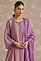 Featuring a lilac A-line kurta in tissue base with hand embroidery. It is paired with straight pants, a cotton slip and a crushed silk dupatta. Accentuate it with statement jewellery and heels for a festive look.