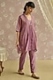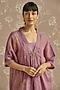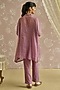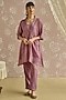 Featuring a lilac kaftan in tissue base with hand embroidery. It is paired with pants and a cotton slip. Accentuate it with statement earrings and heels for festive occasions.